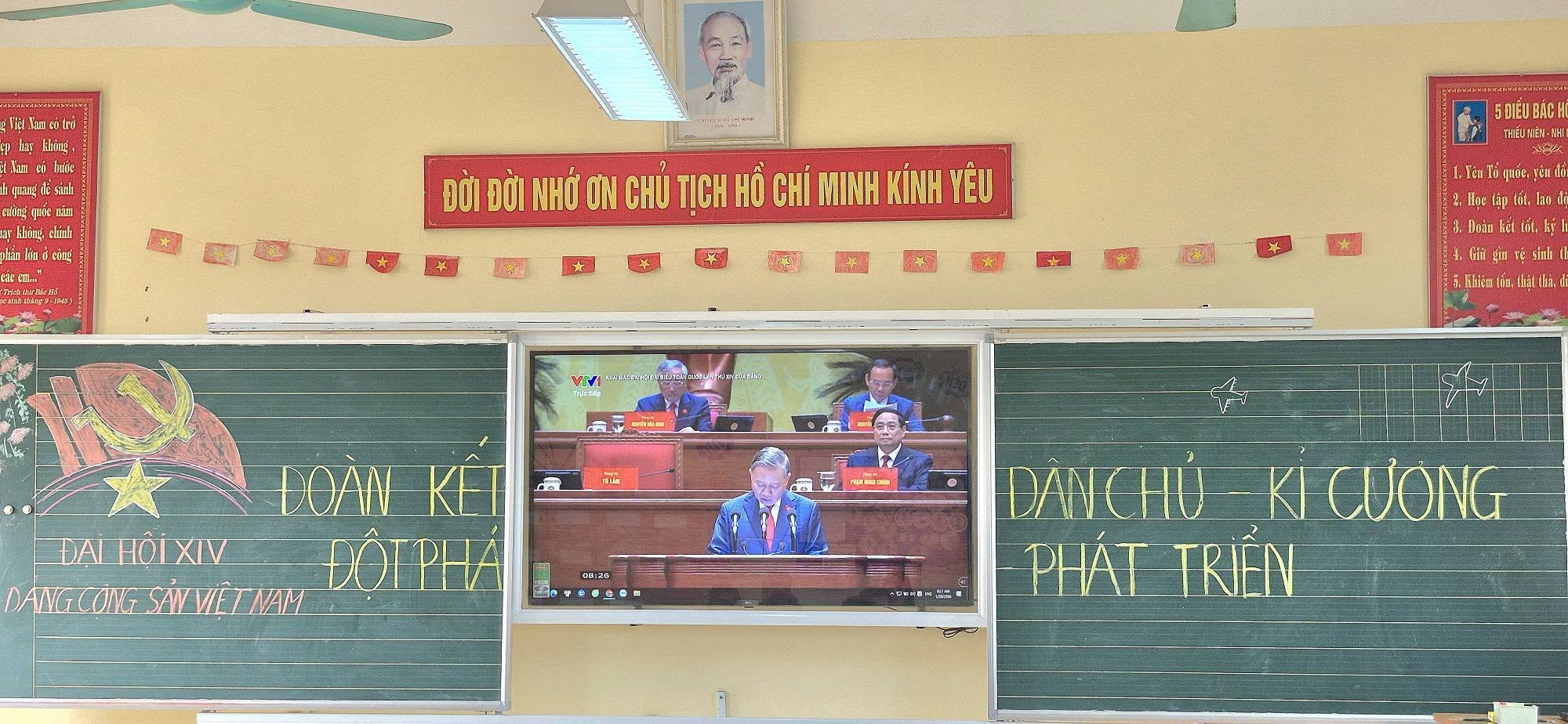 Nhà trường và Đoàn Thanh niên đã tổ chức, hướng dẫn học sinh theo dõi Lễ khai mạc Đại hội Đảng trực tiếp trên truyền hình, giúp các em bước đầu hiểu được ý nghĩa, vai trò to lớn của Đại hội Đảng đối với sự phát triển của đất nước, từ đó hình thành ý thức công dân, tinh thần trách nhiệm và khát vọng cống hiến ngay từ khi còn ngồi trên ghế nhà trường.